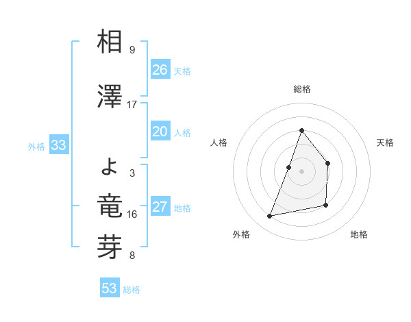 相澤 ょ竜芽さんを姓名の画数から五運を鑑定