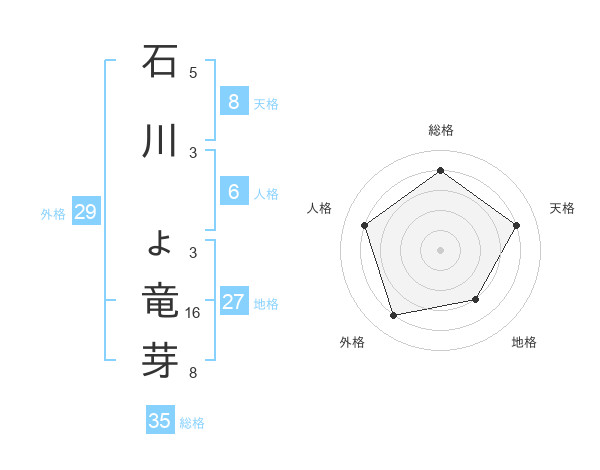 石川 ょ竜芽さんの総格は35画の4点!