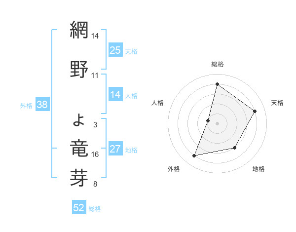 網野 ょ竜芽さんを姓名の画数から五運を鑑定