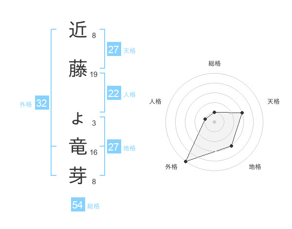 近藤 ょ竜芽さんの外格は32画の5点!