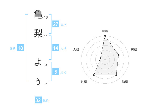 亀梨 よぅさんの総格は32画の5点!