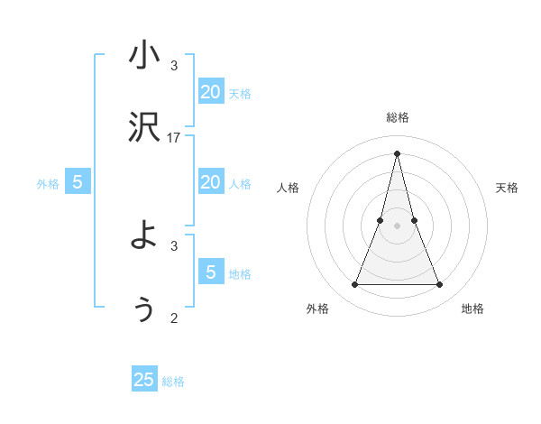 小沢 よぅさんを姓名の画数から五運を鑑定