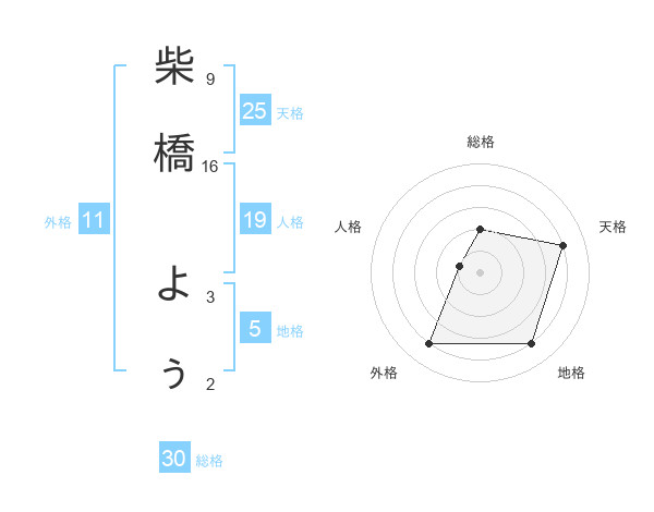 柴橋 よぅさんを姓名の画数から五運を鑑定