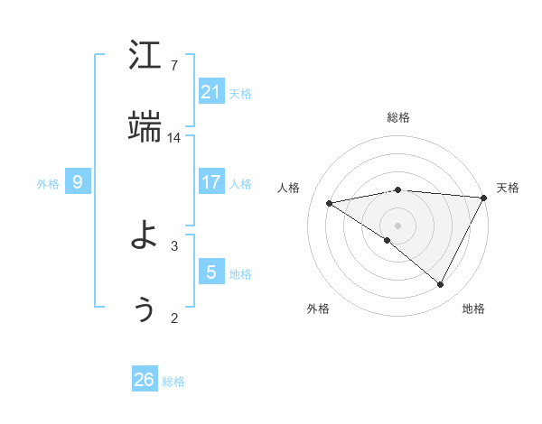 江端 よぅさんの天格は21画の5点!