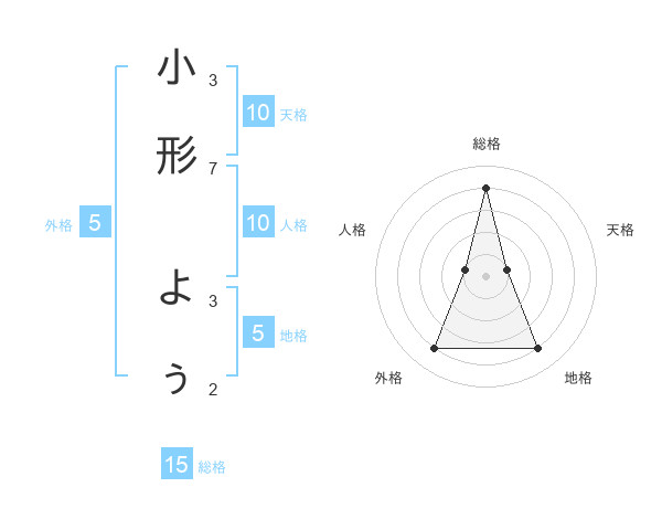 小形 よぅさんの総格は15画の4点!