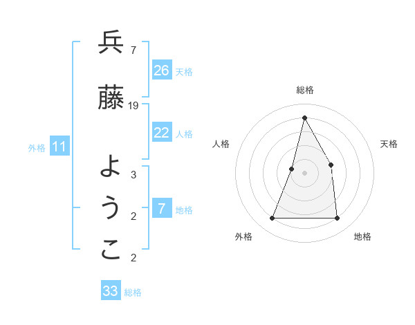 兵藤 ようこさんを姓名の画数から五運を鑑定