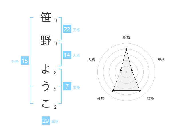 笹野 ようこさんを姓名の画数から五運を鑑定