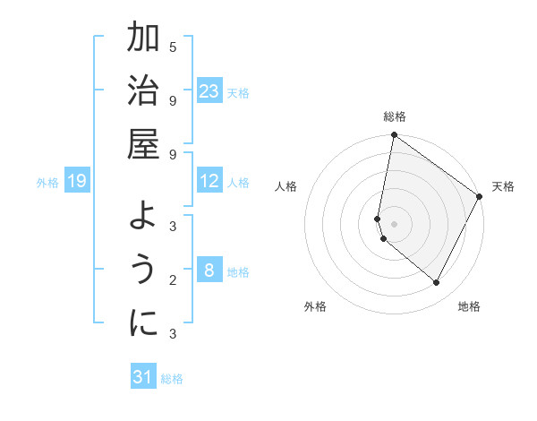 加治屋 ようにさんの天格は23画の5点!