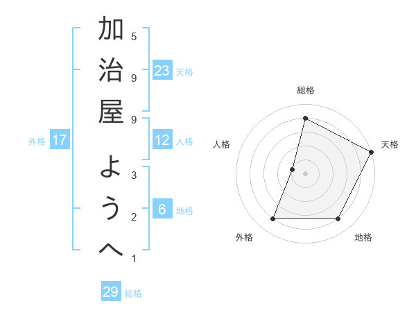 加治屋 ようへさんを姓名の画数から五運を鑑定
