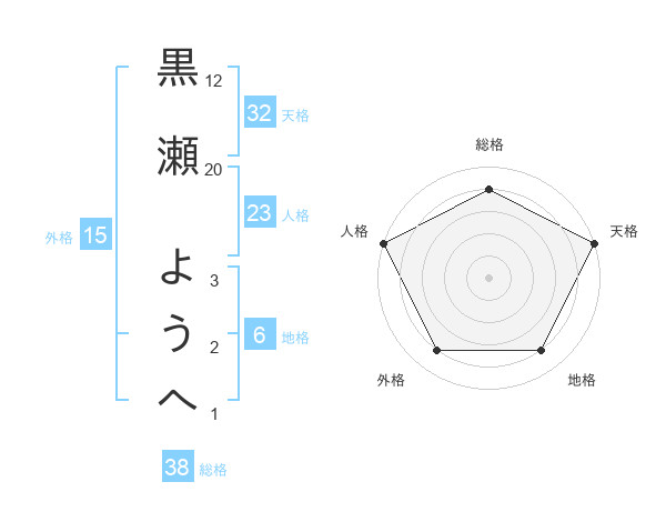黒瀬 ようへさんを姓名の画数から五運を鑑定