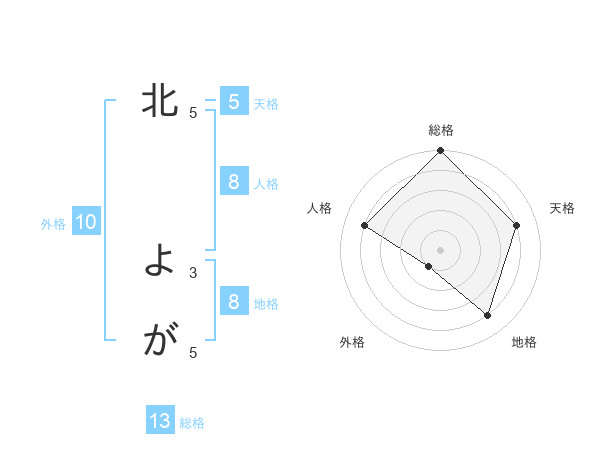 北 よがさんの総格は13画の5点!