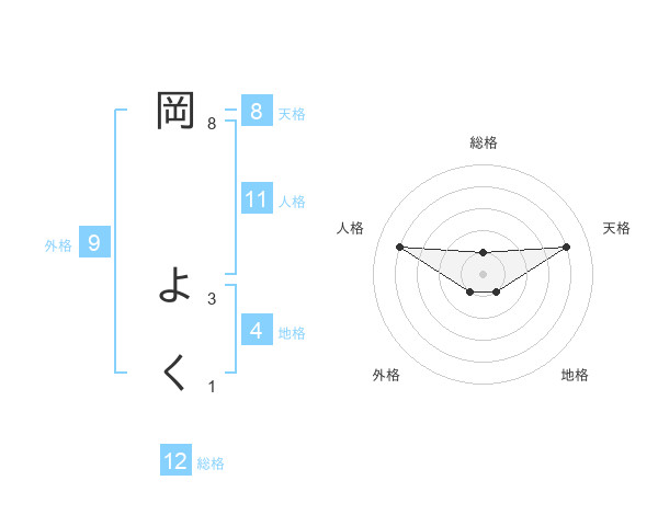 岡 よくさんの総格は12画の1点!