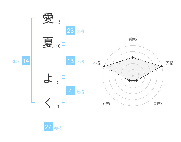 愛夏 よくさんを姓名の画数から五運を鑑定