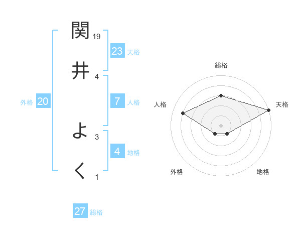 関井 よくさんの総格は27画の3点!