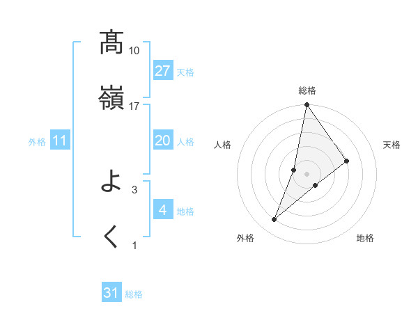 髙嶺 よくさんの総格は31画の5点!