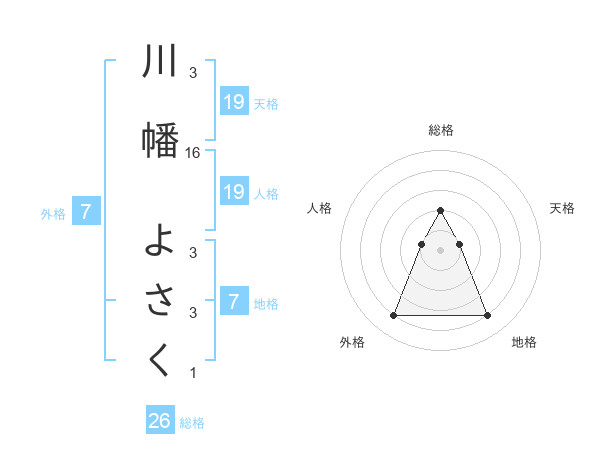 川幡 よさくさんの総格は26画の2点!
