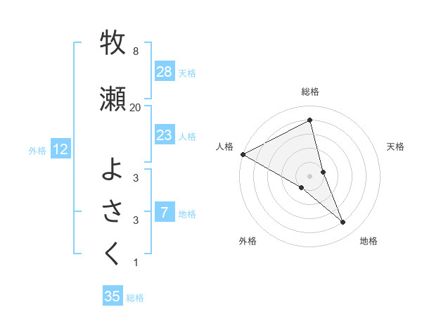 牧瀬 よさくさんの総格は35画の4点!