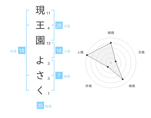 現王園 よさくさんの総格は35画の4点!