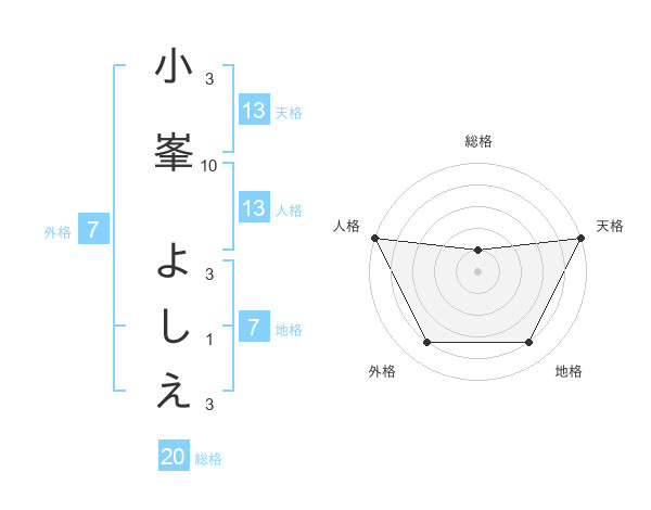 小峯 よしえさんを姓名の画数から五運を鑑定