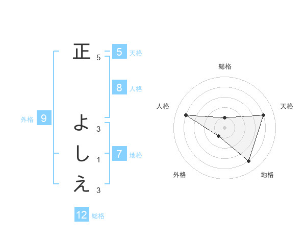 正 よしえさんの天格は5画の4点!