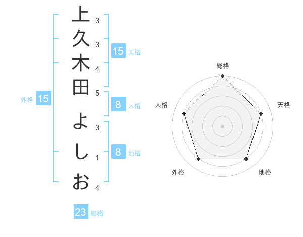 上久木田 よしおさんの総格は23画の5点!