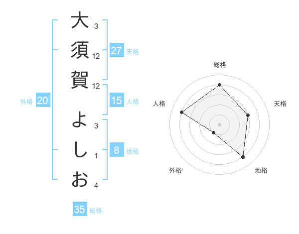 大須賀 よしおさんを姓名の画数から五運を鑑定