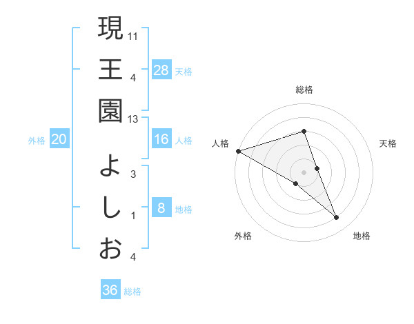 現王園 よしおさんを姓名の画数から五運を鑑定