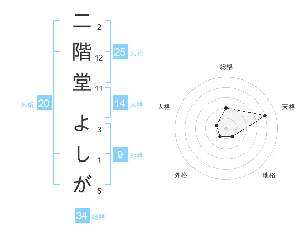 二階堂 よしがさんを姓名の画数から五運を鑑定
