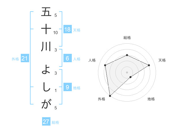 五十川 よしがさんを姓名の画数から五運を鑑定