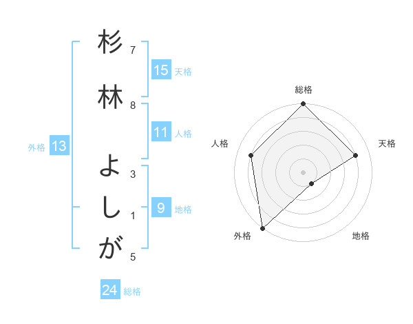 杉林 よしがさんを姓名の画数から五運を鑑定