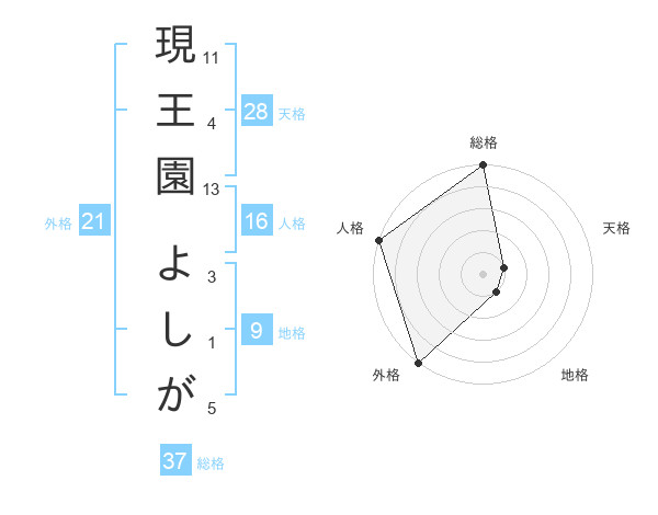 現王園 よしがさんの総格は37画の5点!