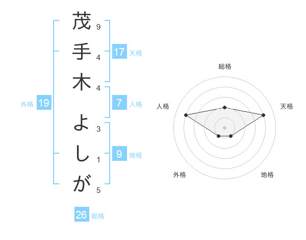 茂手木 よしがさんを姓名の画数から五運を鑑定