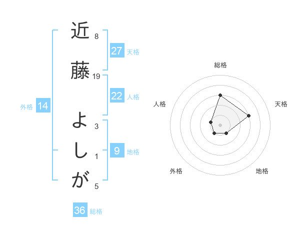 近藤 よしがさんを姓名の画数から五運を鑑定