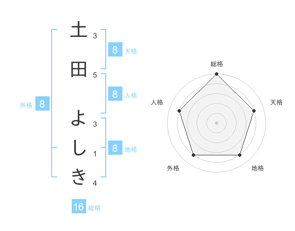 土田 よしきさんの天格は8画の4点!