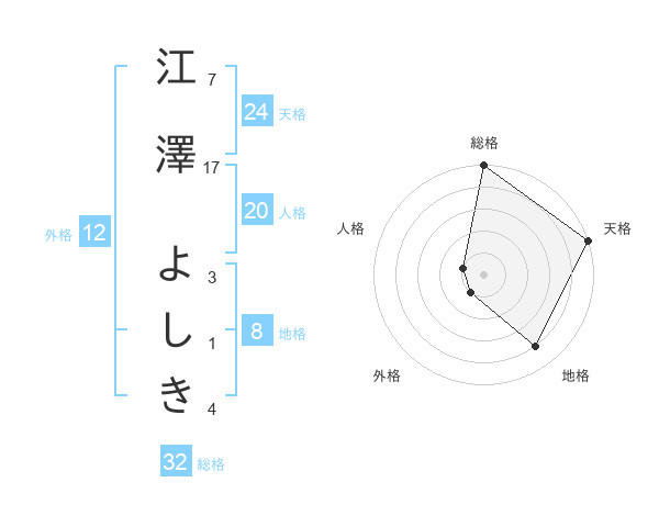 江澤 よしきさんを姓名の画数から五運を鑑定
