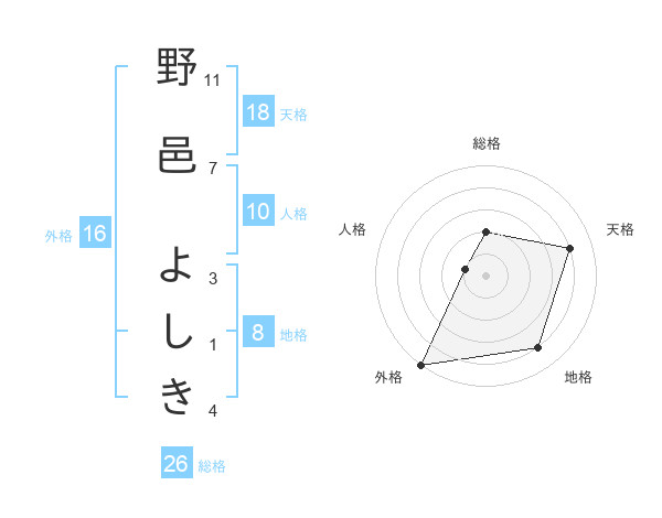 野邑 よしきさんの外格は16画の5点!