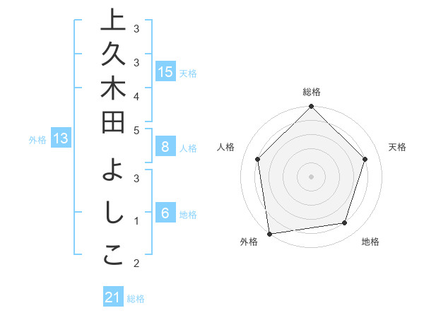 上久木田 よしこさんを姓名の画数から五運を鑑定