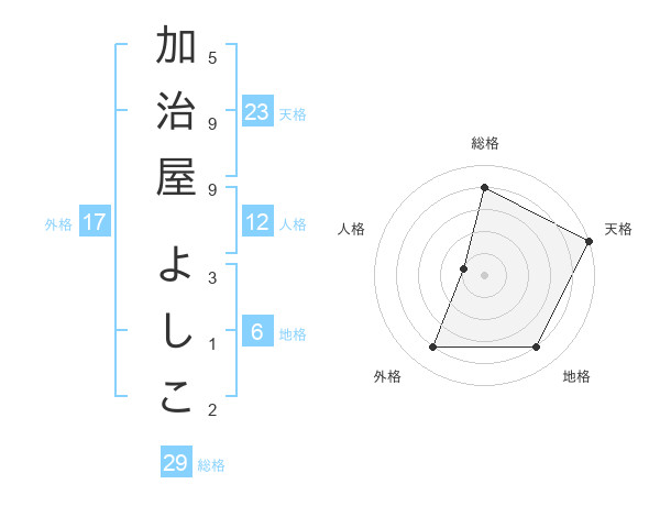 加治屋 よしこさんを姓名の画数から五運を鑑定