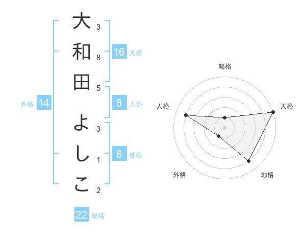 大和田 よしこさんを姓名の画数から五運を鑑定