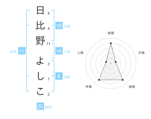 日比野 よしこさんを姓名の画数から五運を鑑定