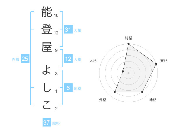 能登屋 よしこさんを姓名の画数から五運を鑑定