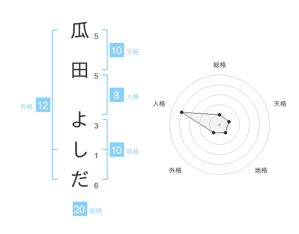 瓜田 よしださんの総格は20画の1点!