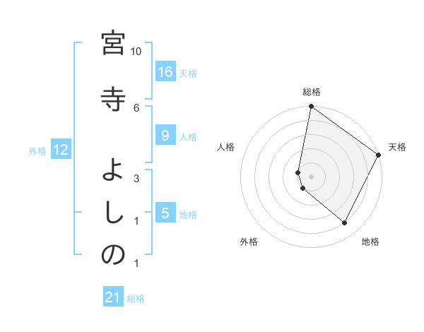 宮寺 よしのさんを姓名の画数から五運を鑑定