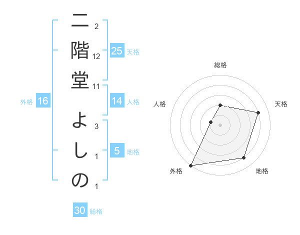 二階堂 よしのさんを姓名の画数から五運を鑑定