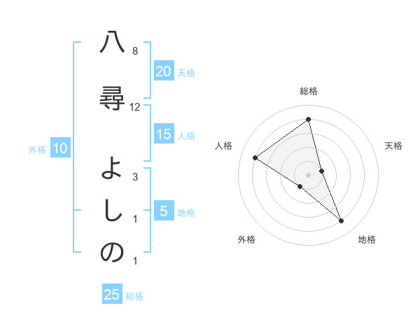 八尋 よしのさんの天格は20画の1点!