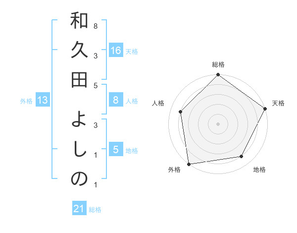 和久田 よしのさんを姓名の画数から五運を鑑定