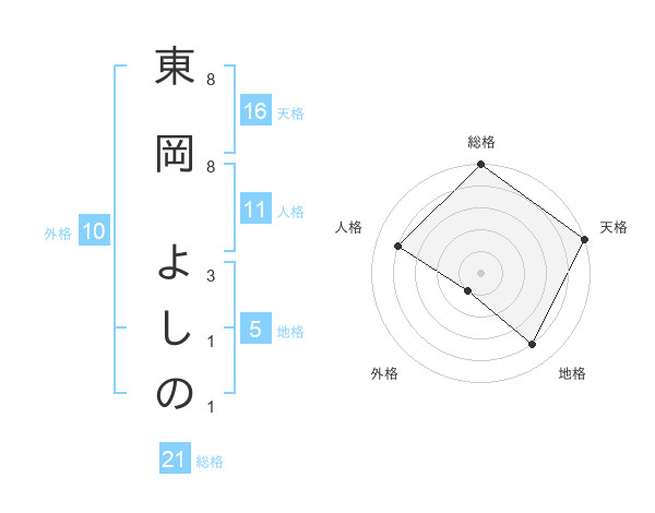 東岡 よしのさんを姓名の画数から五運を鑑定