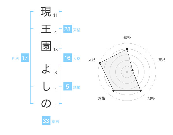 現王園 よしのさんを姓名の画数から五運を鑑定