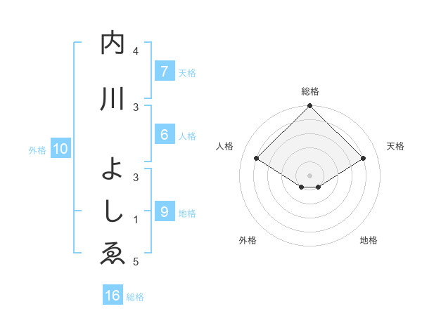 内川 よしゑさんを姓名の画数から五運を鑑定