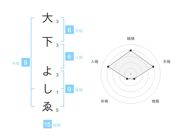 大下 よしゑさんを姓名の画数から五運を鑑定